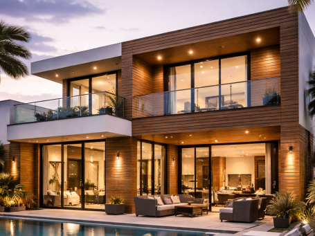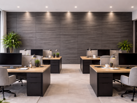 • Acabados modernos (madera, mármol, concreto, tonos lisos)
