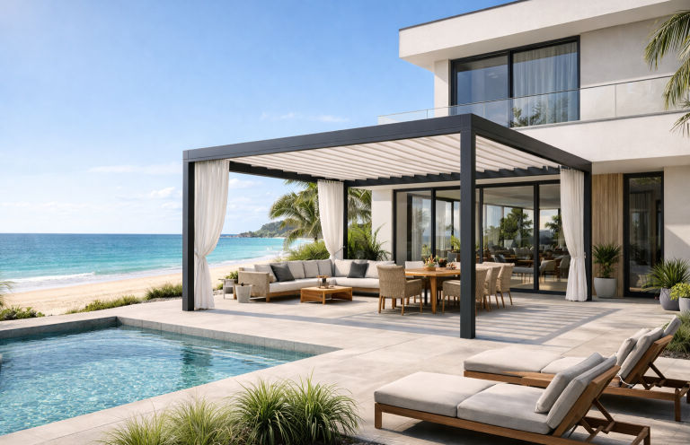 Estructuras arquitectónicas que aportan sombra, diseño y carácter a espacios exteriores, creando ambientes funcionales y estéticamente atractivos.